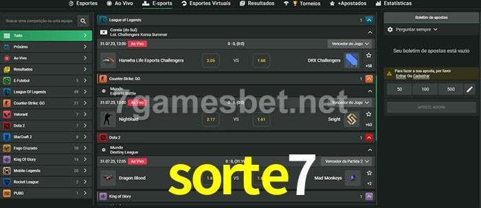 A aposta sorte7 oferece aos jogadores a experiência mais conveniente de apostas em eSports!